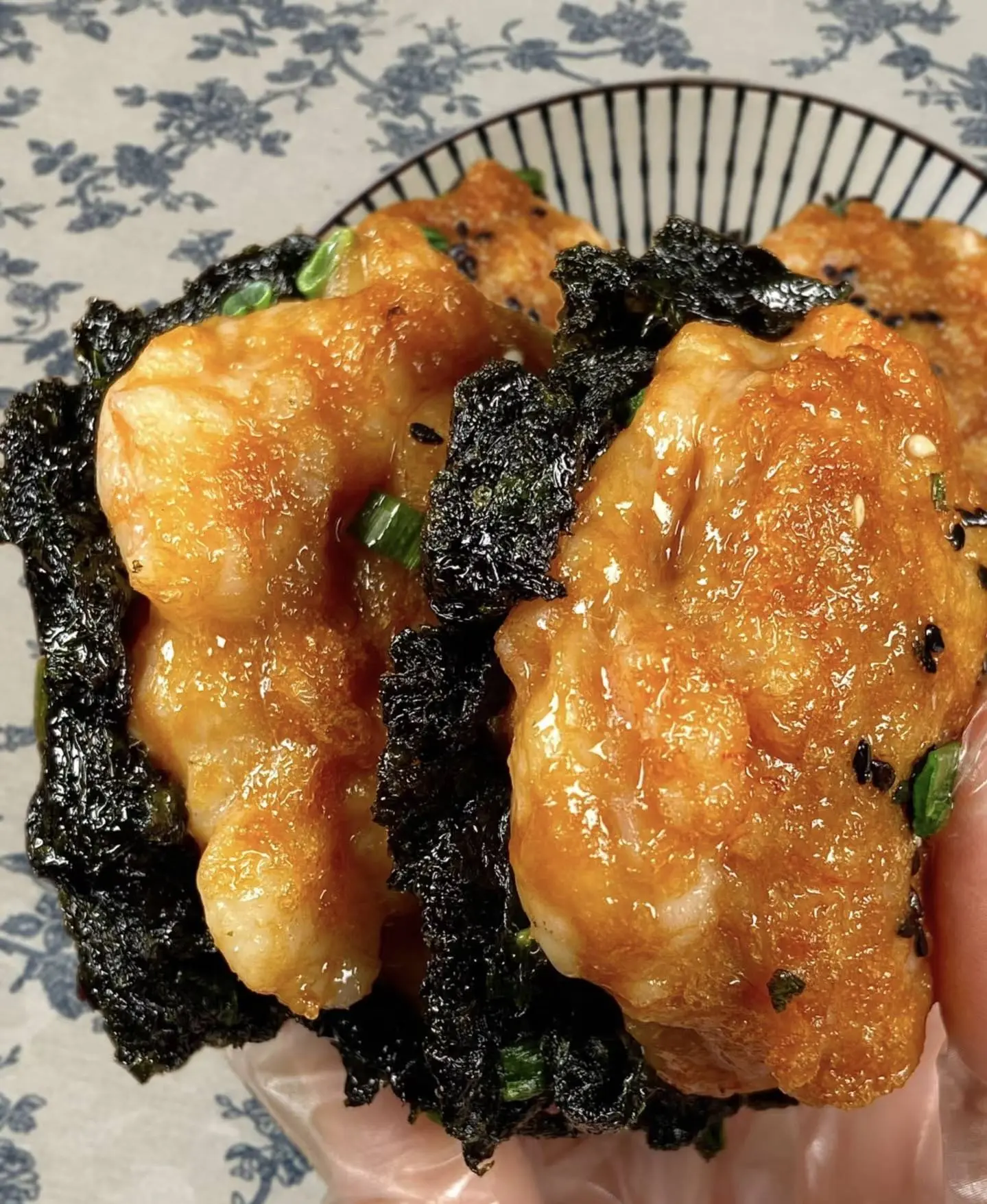 在美食的缤纷世界里,总有一些佳肴,以其独特的风味和巧妙的搭配,瞬间抓住人们的味蕾。紫菜虾滑饼,便是这样一款兼具美味与创意的美食。它将海洋的馈赠——紫菜,与鲜嫩弹牙的虾滑完美融合,无论是作为早餐开启活力满满的一天,还是当作下午茶的精致小点,亦或是餐桌上的一道特色菜肴,都能让人回味无穷。接下来,就让我们一同走进紫菜虾滑饼的制作旅程,探寻其中的美味奥秘。